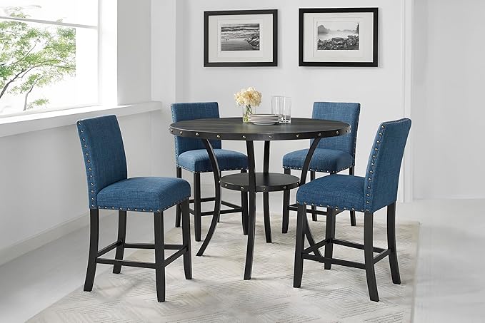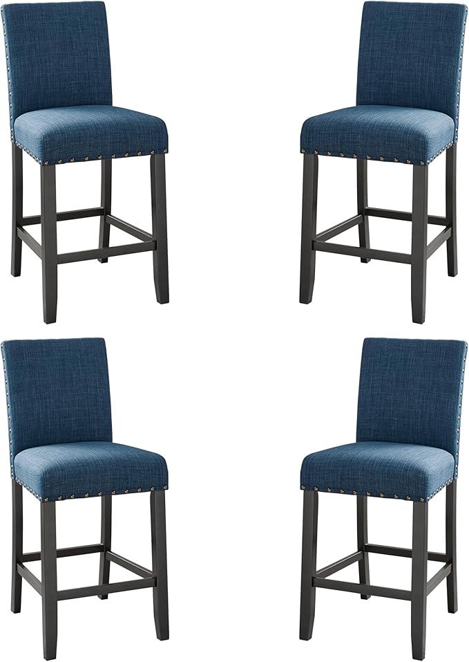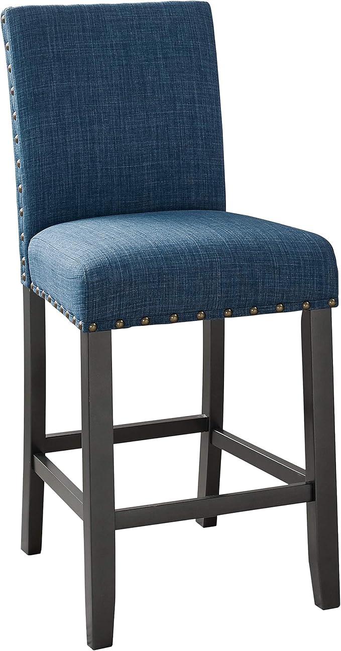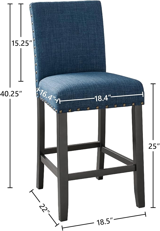 New Classic Furniture Crispin Counter Dining Chair (Set of Four), 100% Polyester Marine Blue Fabric with Espresso Legs