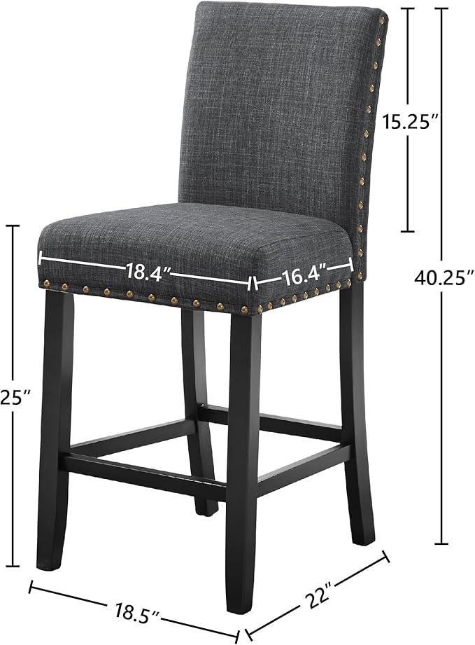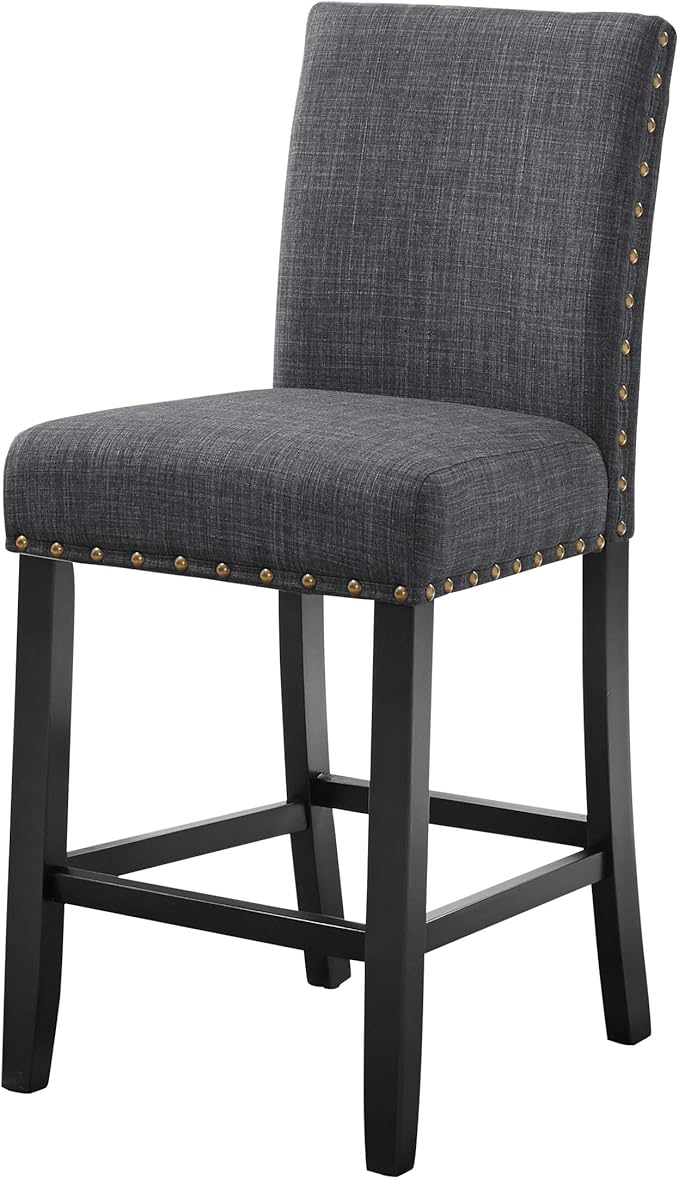New Classic Furniture Crispin Counter Dining Chair (Set of Four), 100% Polyester Granite Gray Fabric with Espresso Legs