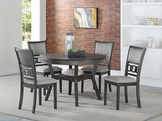 New Classic Furniture Gia Dining Chair (Set of Four), Light Gray Fabric Upholstered Seat & Back Rest, Gray