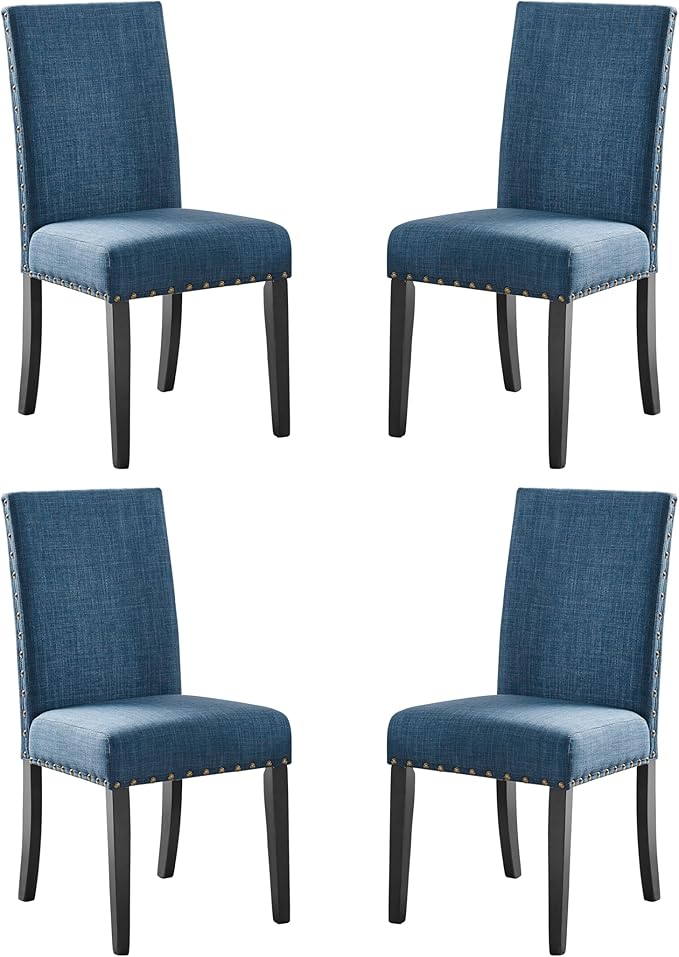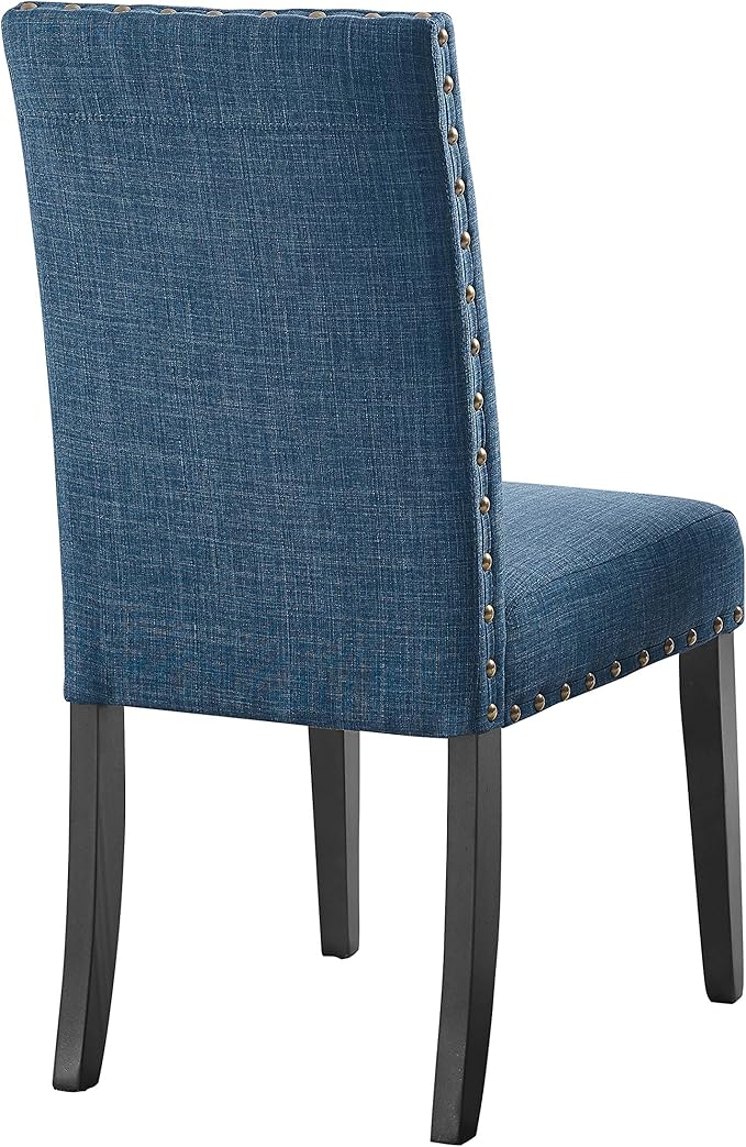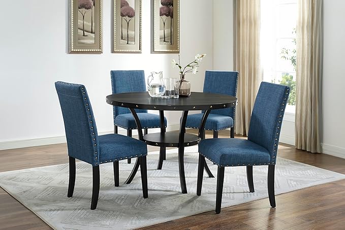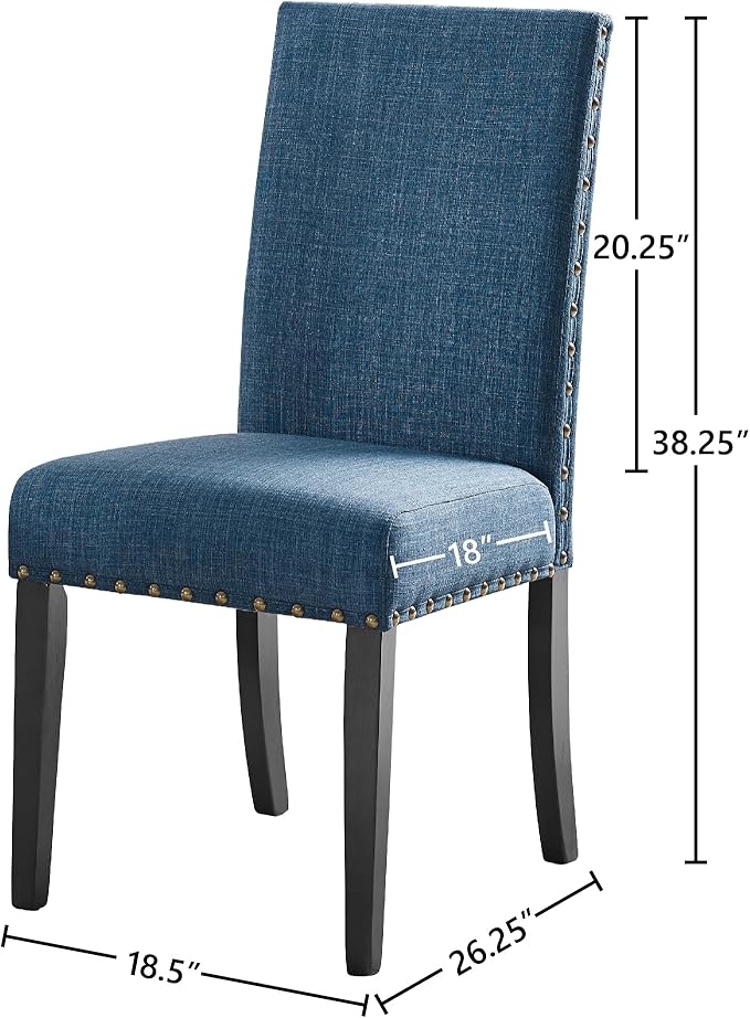 New Classic Furniture Crispin Dining Chair (Set of Four), 100% Polyester Marine Blue Fabric with Espresso Legs