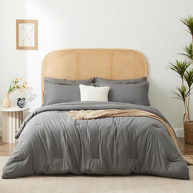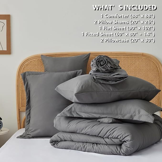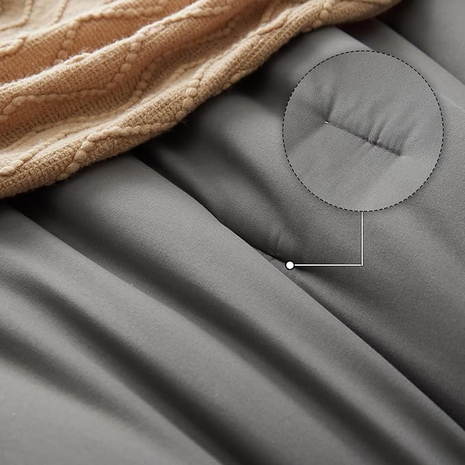 Full bed in a bag 7 pieces bedding comforter set with Comforter and Sheets Grey Full bed set with sheets,Pillow Shams, Flat Sheet, Fitted Sheet and Pillowcases