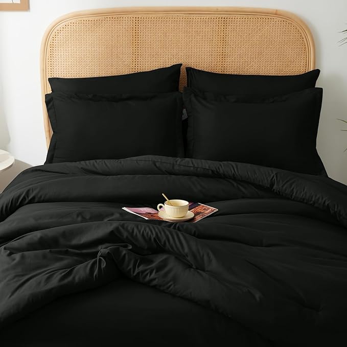 King Bed in a Bag 7 Pieces Bedding Comforter Set with Comforter and Sheets Black King Bed Set with Sheets,Pillow Shams, Flat Sheet, Fitted Sheet and Pillowcases