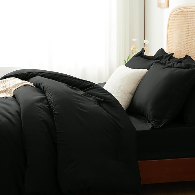 Queen Bed in a Bag 7 Pieces Bedding Comforter Set with Comforter and Sheets Black Queen Bed Set with Sheets,Pillow Shams, Flat Sheet, Fitted Sheet and Pillowcases
