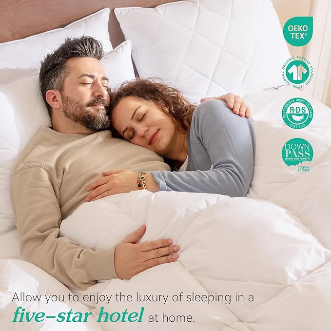 Three Geese White Goose Feather Bed Pillows Queen Size Set of 1- Soft 600 Thread Count 100% Cotton, Medium Firm,Soft Support Surround Fill Polyester (Queen Size:Pack of 1)