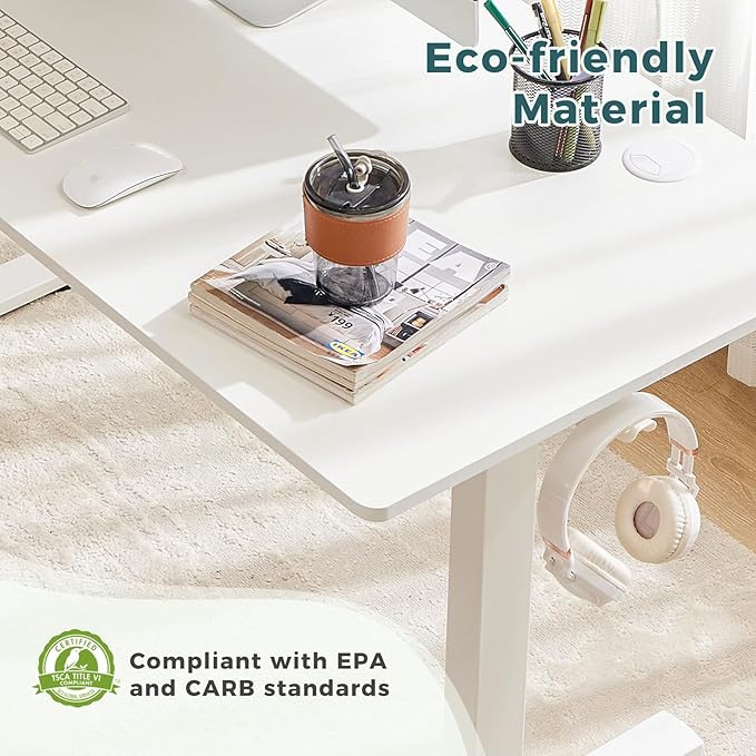SMUG Standing Desk, 55x24 Inch Ergonomic Adjustable Height Electric Sit Stand Up Down Computer Table with Whole-Piece Desktop Board, Computer Workstation for Home Office, White(2 Packages)