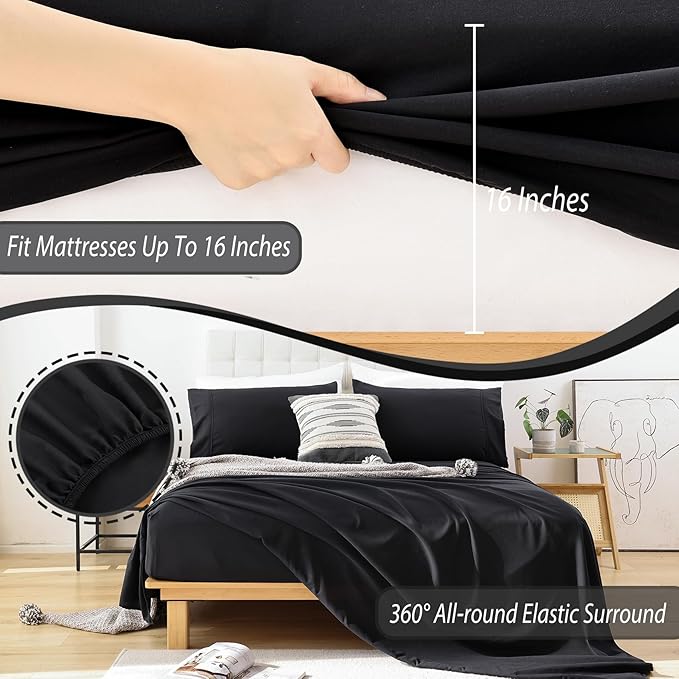 Whitney Home Textile King Sheet Set - 4 Piece Luxury Cooling Bed Sheets for King Size Bed, Silky Soft Sheets 16" Deep Pocket, Hotel Bedding Sheets and Pillowcases, Wrinkle Free Oeko-Tex Sheets