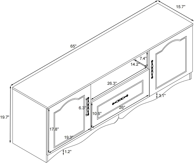 About This This TV stand is a visually appealing and fashionable piece with its doors featuring an inner recessed smooth...