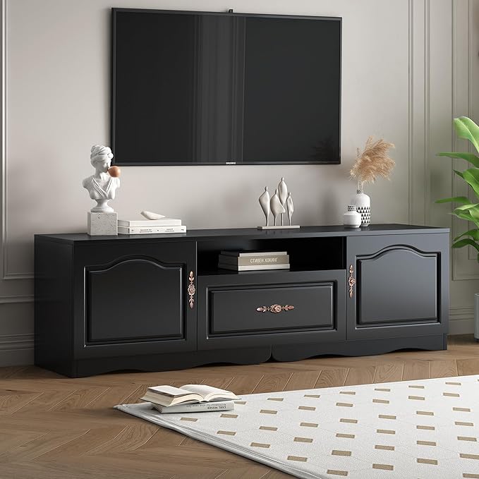 Merax Modern TV Stand for 60"+ Televisions with 1 Shelf, 2, 1 Drawer, Storage Console Cabinet Furniture for Living Room, 65.0 inch Length, Black