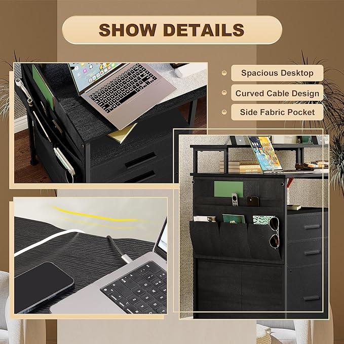 About This Reversible Office Desk: Install the fabric drawers on the right or left side to fit your layouts. The...