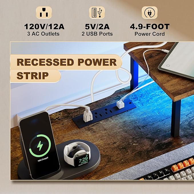 About This Power Outlet & LED Lights: This large computer desk features built-in LED lighting with 20 static colors, 22...