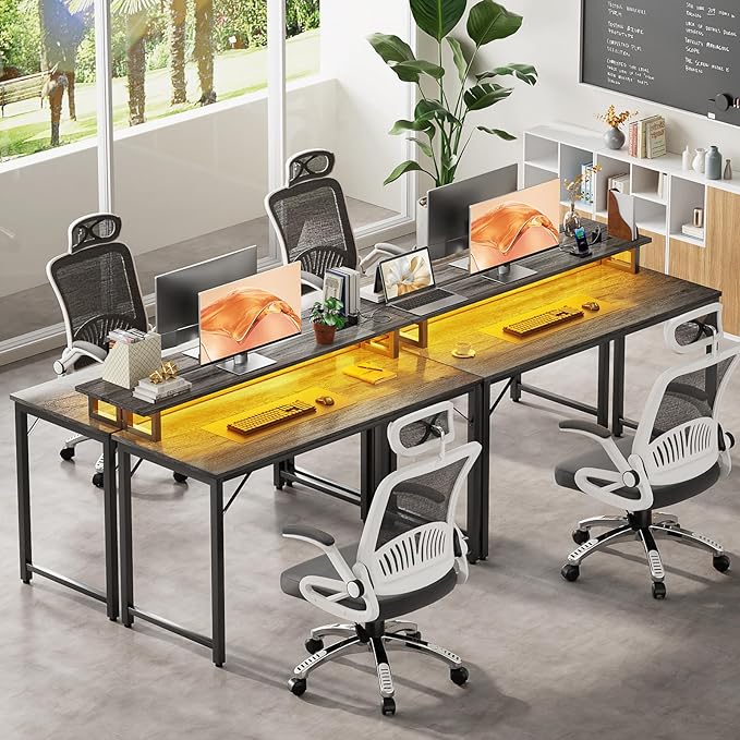 Computer Desk with USB Power Outlets and LED Lights, 47 inch Gaming desk with Monitor Stand for Small Space Home Office, Modern Simple Study Writing Table PC Desks, Black Oak