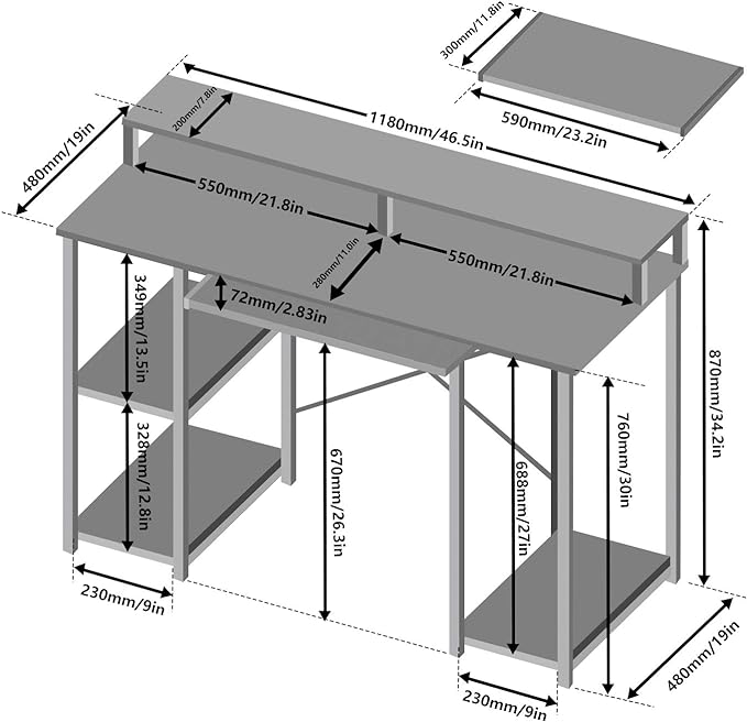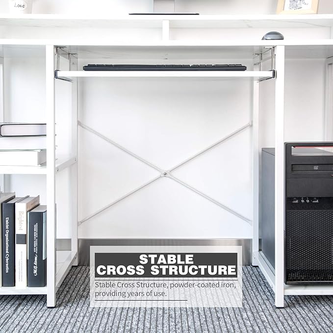 TOPSKY Compact Computer Desk with Storage Shelves/Keyboard Tray/Monitor Stand Study Table for Home Office (White marble texture., 46.5 * 19 inch)