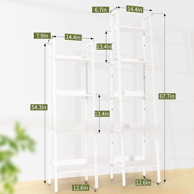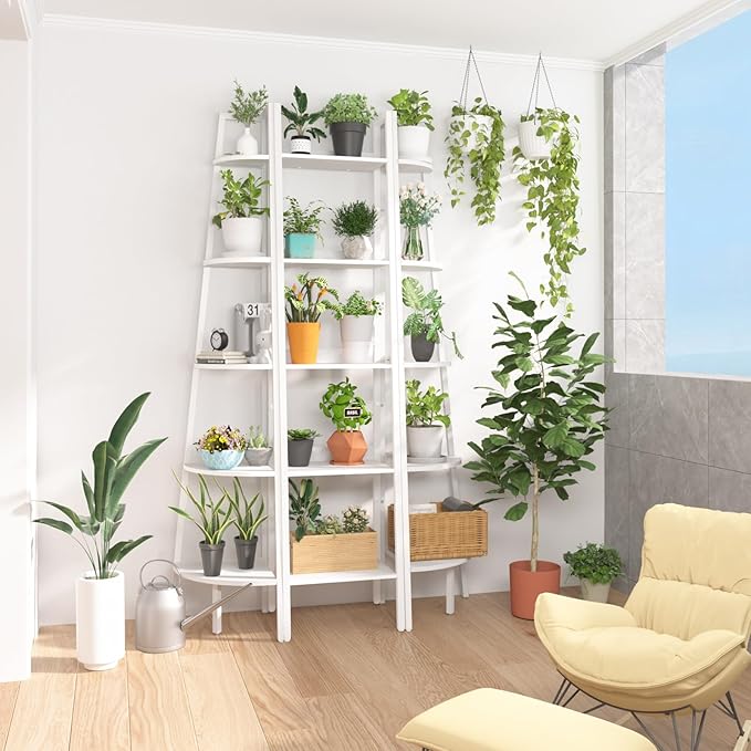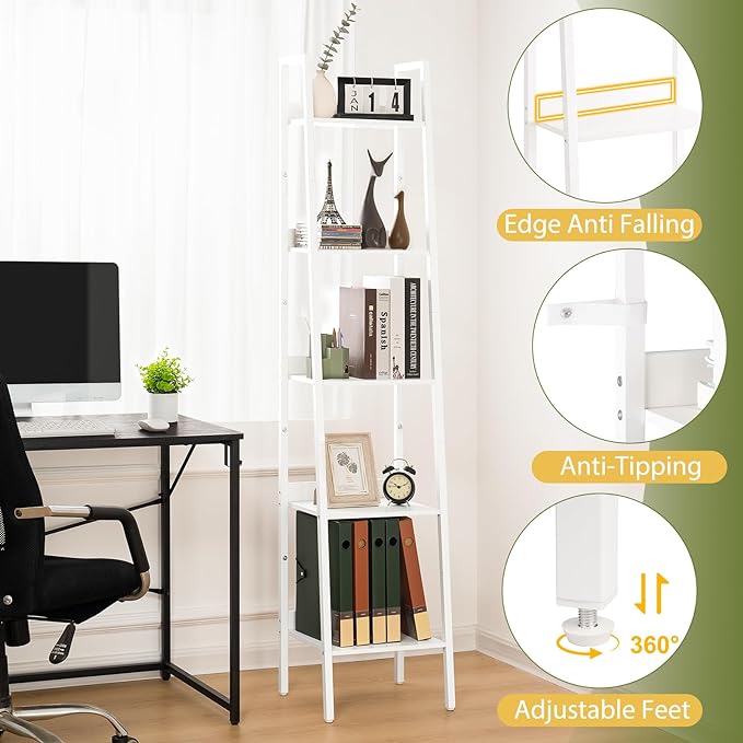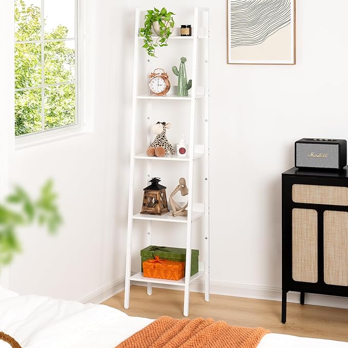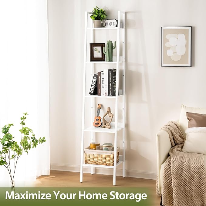Yoobure Ladder Shelf, 5 Tier Tall Ladder Bookshelf Corner Shelf, Industrial Book Shelf Ladder Bookcase Narrow, Standing Storage Shelves Display Shelf for Bedroom Living Room Office Kitchen Bathroom