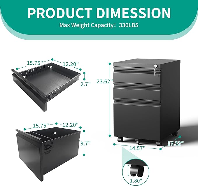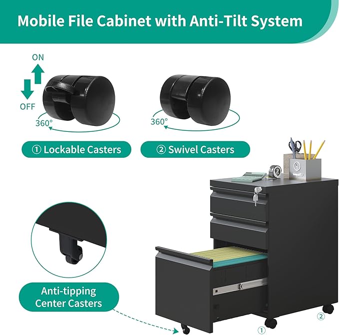 About This ✦【Locking Filing Cabinet】This under desk file cabinet with wheels has a handy lock system that uses just one...
