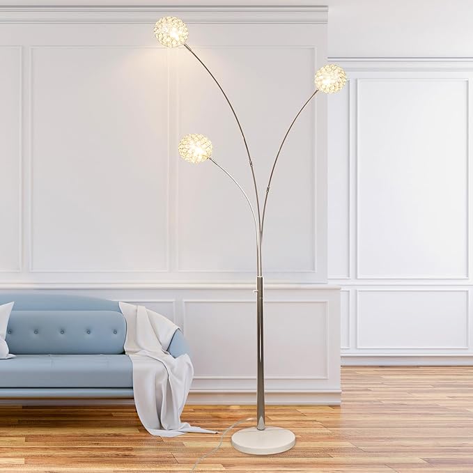 About This ✨【Unique Design】86.6 inch lamp pole, lamp head diameter: 5.12 inch, arching arms, and spherical-shaped crystal heads, suitable for...