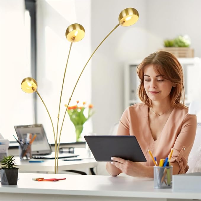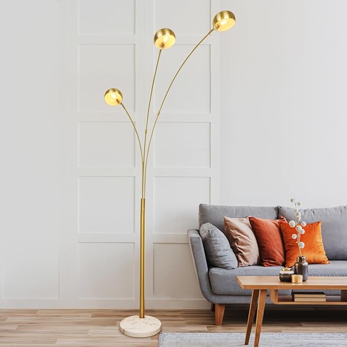 Depuley 3-Light Modern Floor Lamp, Dimmable Arc Floor Lamps with Marble Base, Multi Head Tall Standing Lamps with 350°/ 90° Rotating Lights for Living Room, Bedroom, Office(Gold, E12 Bulbs Included)