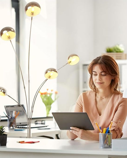 Depuley 5-Light Modern LED Floor Lamp, Adjustable Metal Tall Standing Lamps with Marble Base, Dimmable Spider Floor Lamps with Flexible Rotating Lights for Living Room(Silver, E12 Bulbs Included)