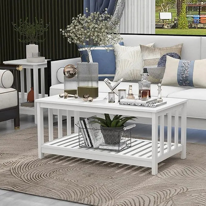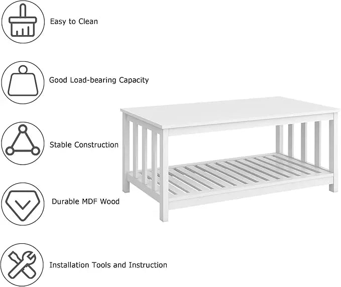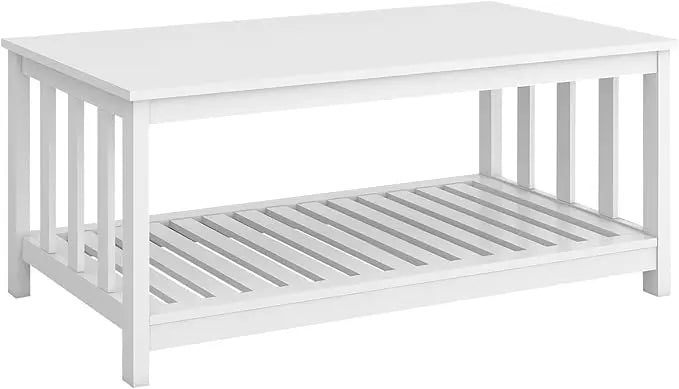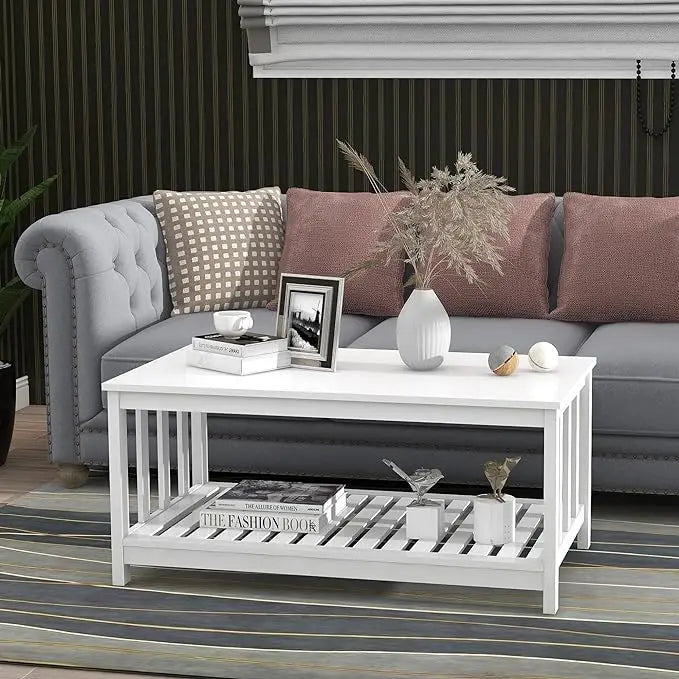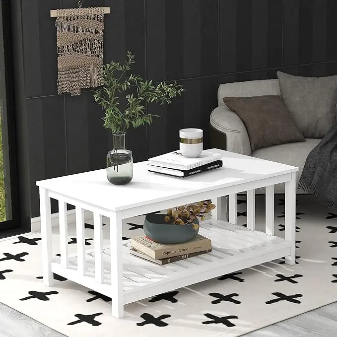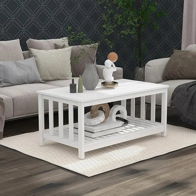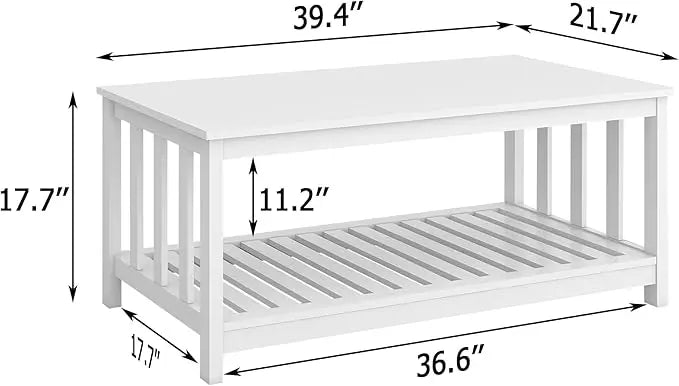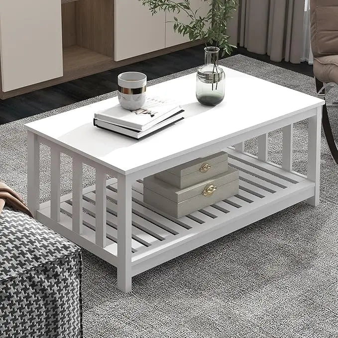 TaoHFE White Modern Coffee Table with Storage Shelf 2-Tier Living Room Table Rectangular Center Table 40 Inch Wooden Coffee Tables for Living Room Furniture for Living Room, Meeting Room, Office