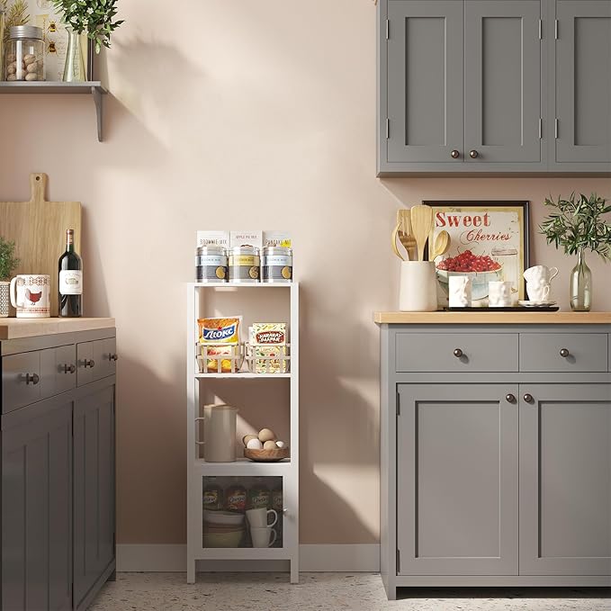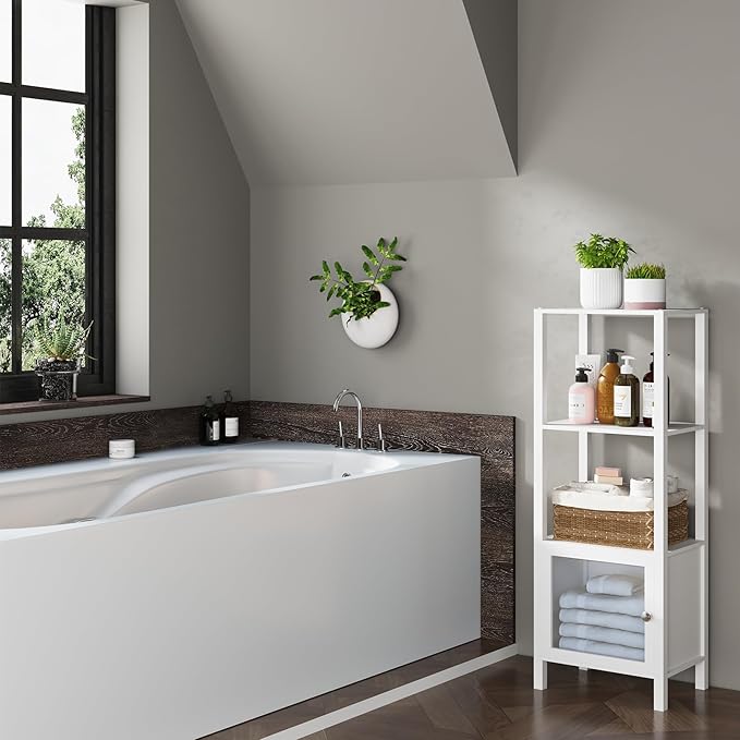 TUTOTAK 4 Tier Bookcase and Bookshelf, Narrow Book shelf with Door for Small Space, for Living Room, Office, Study, Entryway, White BS03BW004