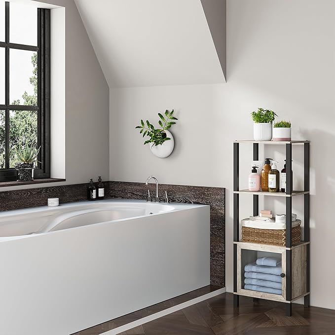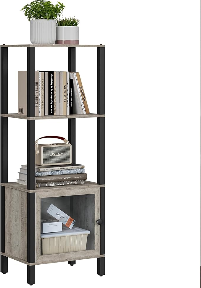 TUTOTAK 4 Tier Bookcase and Bookshelf, Narrow Book shelf with Door for Small Space, for Living Room, Office, Study, Entryway, Greige BS03BG004