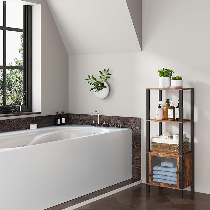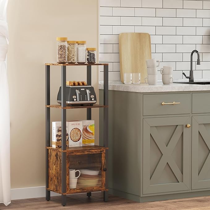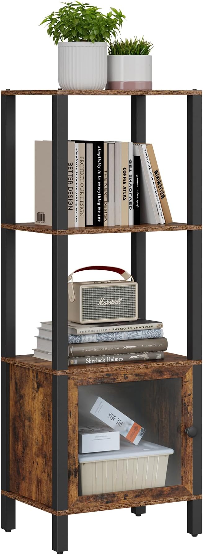 TUTOTAK 4 Tier Bookcase and Bookshelf, Narrow Book shelf with Door for Small Space, for Living Room, Office, Study, Entryway, Brown BS03BB004