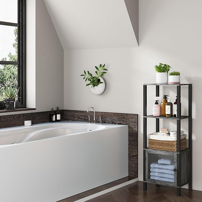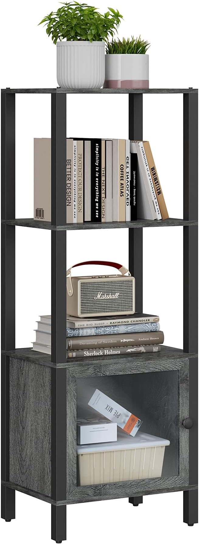 TUTOTAK 4 Tier Bookcase and Bookshelf, Narrow Book shelf with Door for Small Space, for Living Room, Office, Study, Entryway, Charcoal Grey BS03BY004
