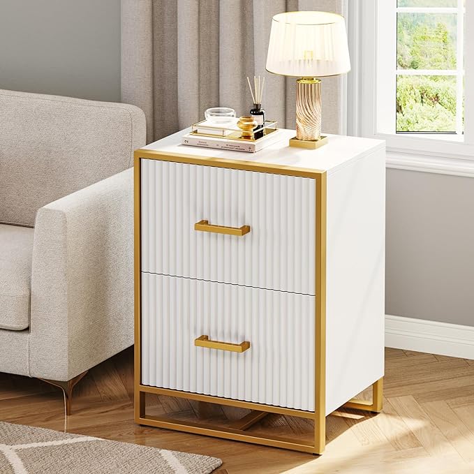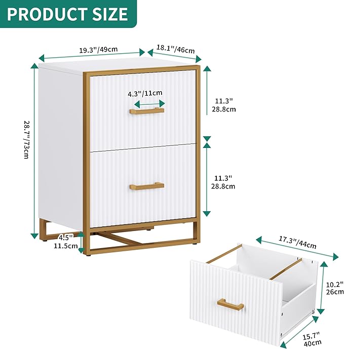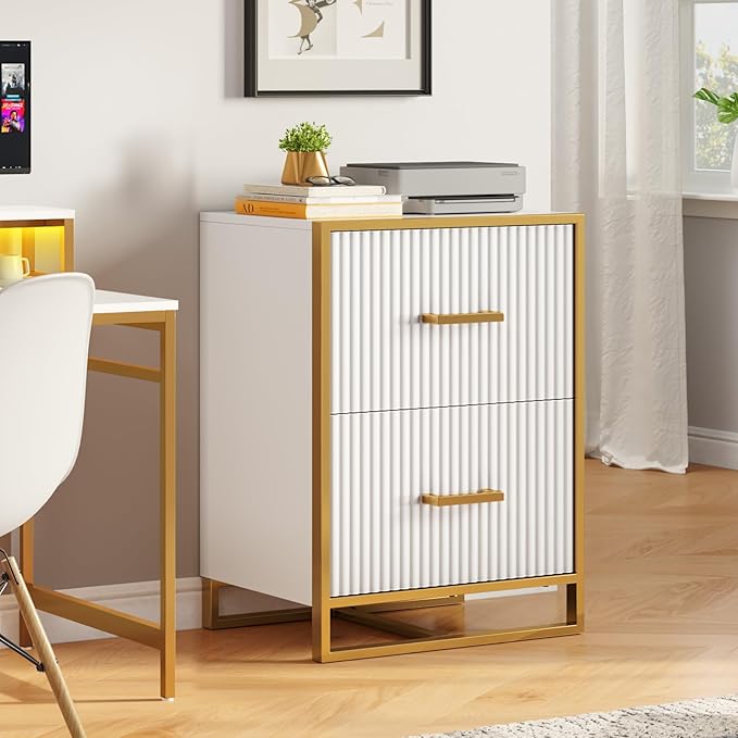 YITAHOME 2 Drawer File Cabinet, Lateral Filing Cabinet for Home Office, White and Gold