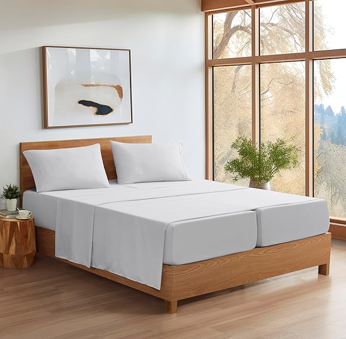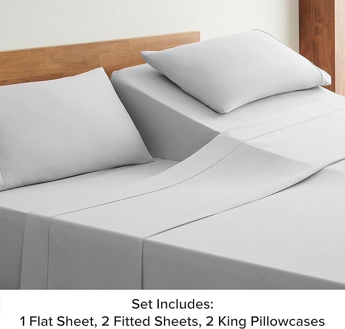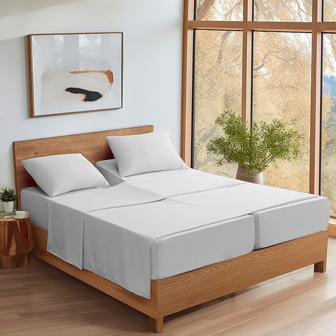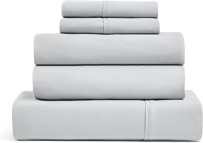 UGG 33611 Alahna Split King Bed Sheet and Pillowcase 5-Piece Set Sleep in Luxury Machine Washable Deep Pockets Wrinkle-Resistant Breathable Cozy Comfort Silky Cooling Sheets, Split King, Stone
