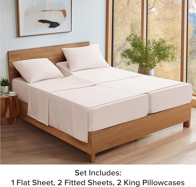 UGG 33612 Alahna Split King Bed Sheet and Pillowcase 5-Piece Set Sleep in Luxury Machine Washable Deep Pockets Wrinkle-Resistant Breathable Cozy Comfort Silky Cooling Sheets, Split King, Shell
