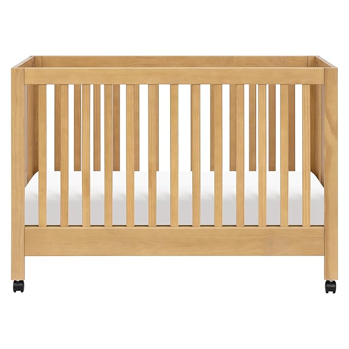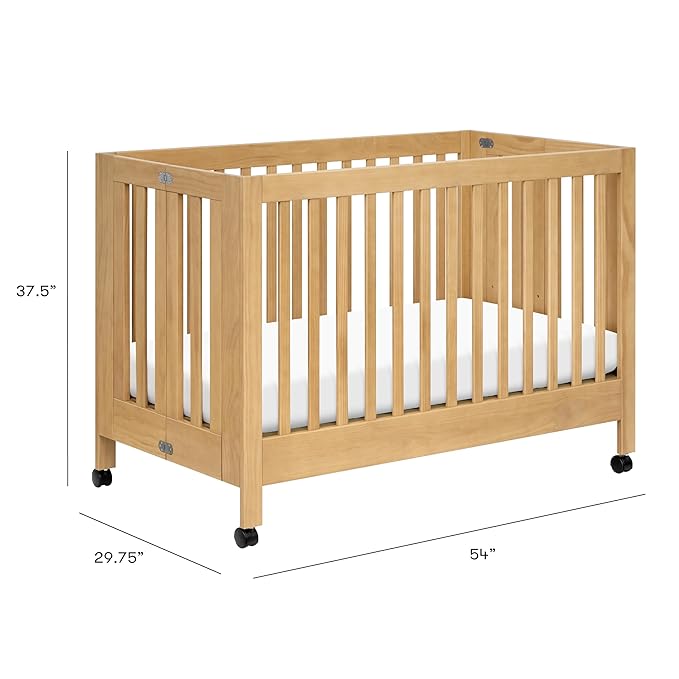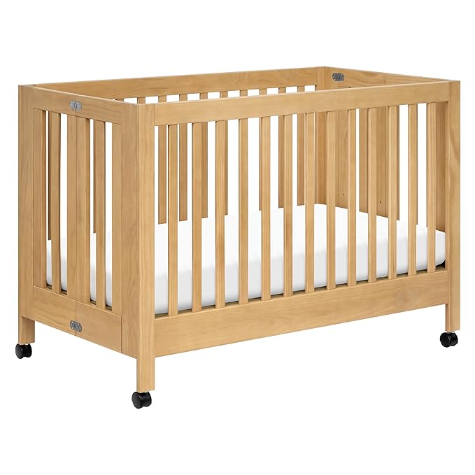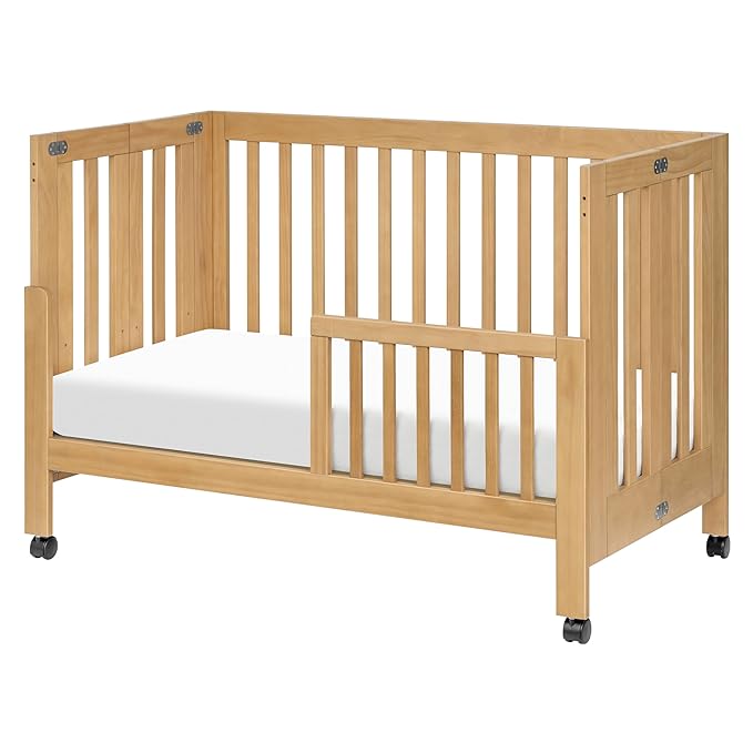 Babyletto Maki Full-Size 2-in-1 Portable Folding Crib with Toddler Bed Conversion Kit in Honey, Greenguard Gold Certified