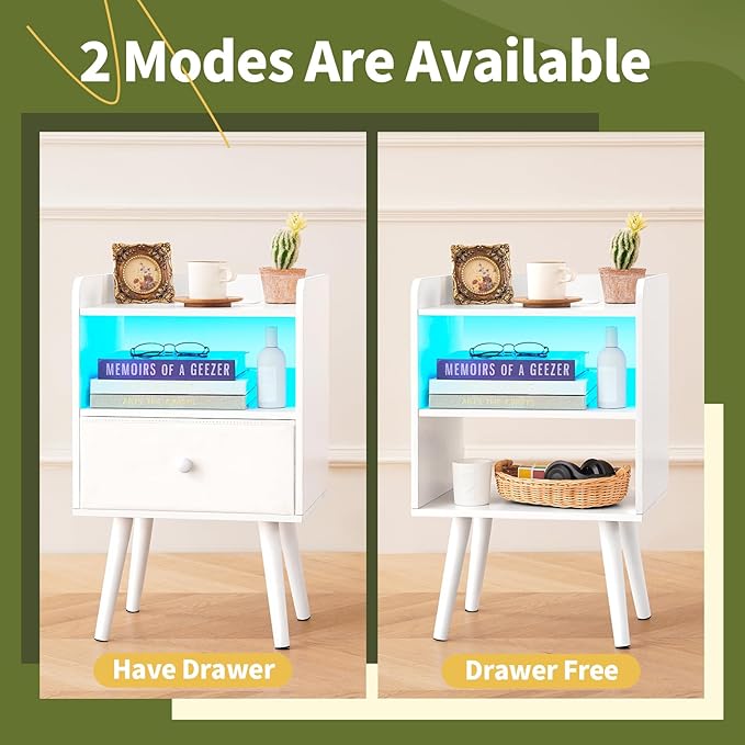 • 🏡【Upgrade Storage Solutions】Our upgraded white nightstand delivers smart storage solutions. The bedroom nightstand offers a spacious top, removable drawer, and an open shelf for versatile storage and display. The tabletop boasts a raised baffle to prevent slipping, and the open back won't block wall sockets - combining convenience with style.