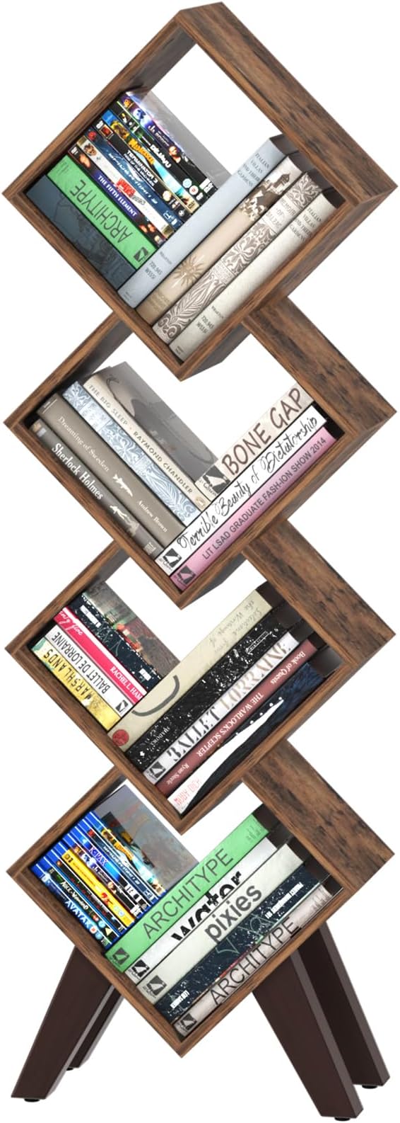 Yoobure Small Bookshelf, Tall 4-Tier Book Shelf, Wood Bookcase Book Organizer, Industrial Bookshelves Floor Standing for CDs/Books in Small Spaces, Bedroom, Living Room, Home Office