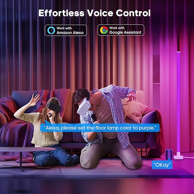 sympa RGB+IC Floor Lamp-63''Smart LED Corner Lamp with Alexa,Color Changing Standing Floor Lamp with 16 Million DIY Colors and Music Sync,Modern Floor Lamp for Living Room,Bedroom and Gaming Room