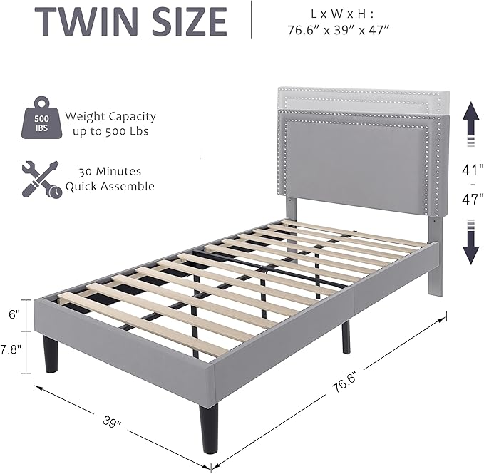 • [ADJUSTABLE HEIGHT] - The headboard comes with 4 height adjustable mounting positions from 41'' to 47'', suitable for any thickness and material mattresses. Under bed clearance provide extra storage space,also can clean easily.