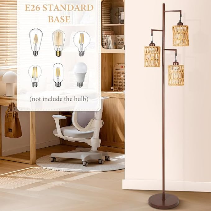 Farmhouse Floor Lamp, Industrial Style Tall Lamps, Boho Tree Standing Tall Lamp with Sturdy Modern Vintage Design for Living Room Bedroom Office Dining Room(Coffee)