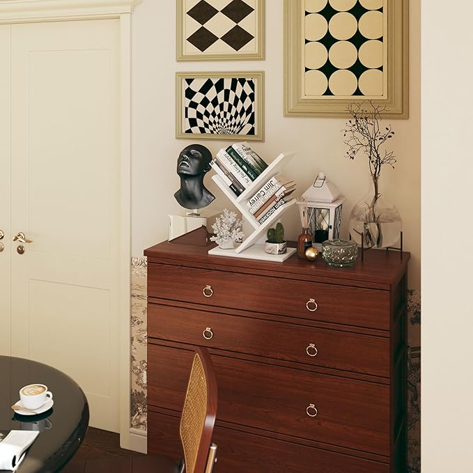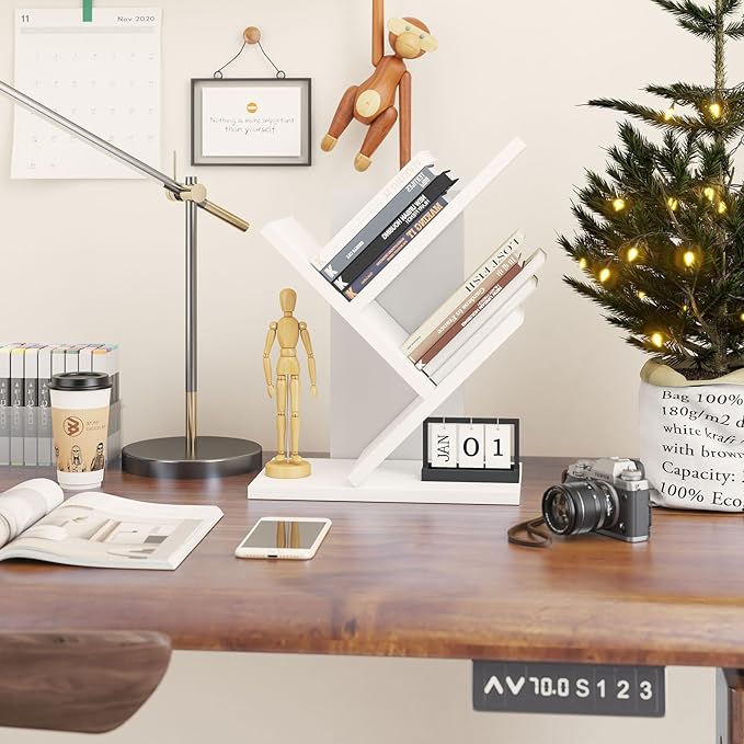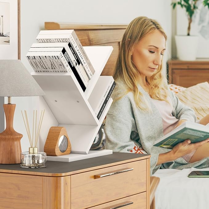 YMYNY 2 Tier Tree Bookshelf, Small Bookcase, Modern Wood Book Storage Rack Organizer, Freestanding Book shelf for Books/Movies/CDs, Display Rack for Bedroom, Home Office, White UHBC012W