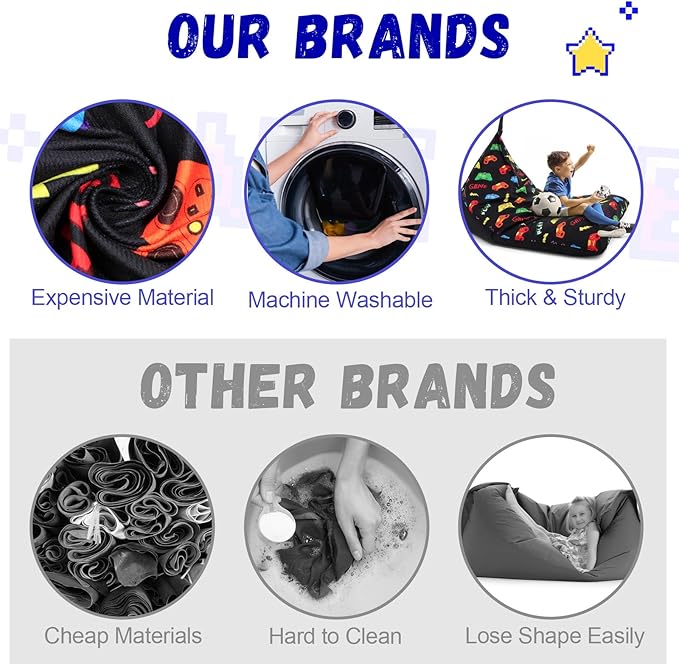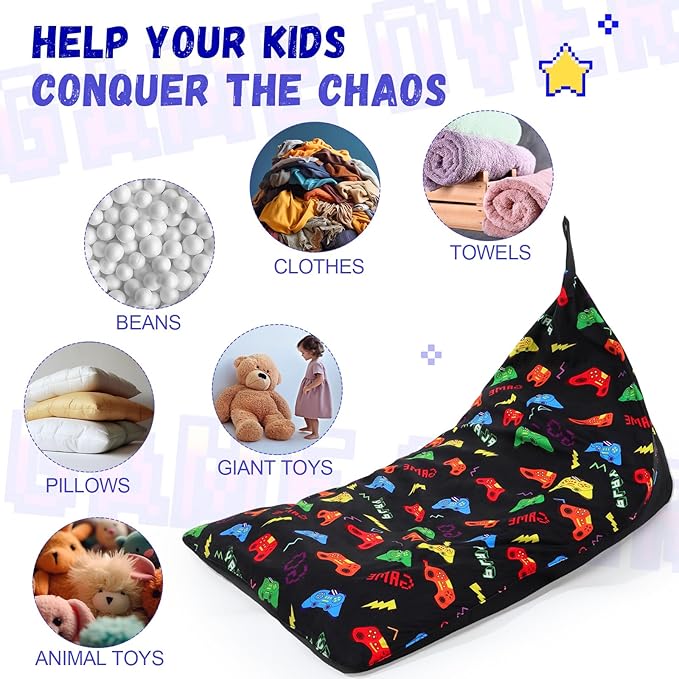 2 Pcs Stuffed Animal Storage Bean Bag Chair Stuffed Animal Bean Bag Storage Large Beanbag Covers Stuff Animal Organizer Bean Bag Couch for Kids Adults Plush Toys Pillows, Cover Only (Gamer)