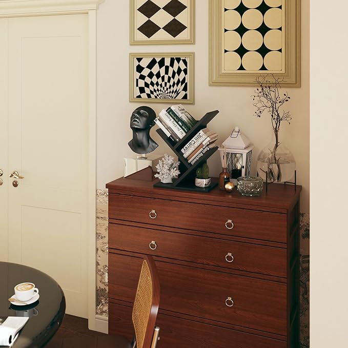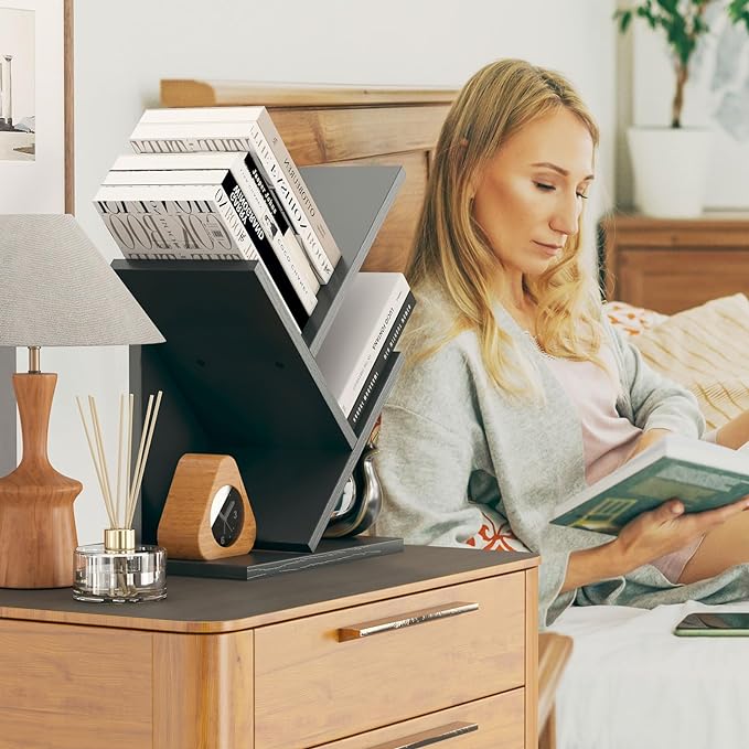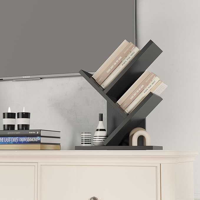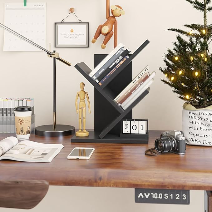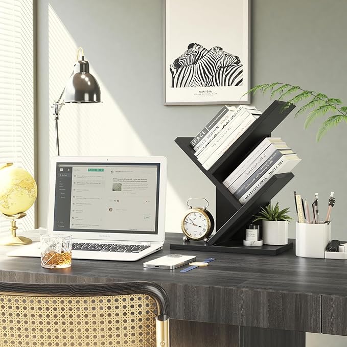 YMYNY 2 Tier Tree Bookshelf, Small Bookcase, Modern Wood Book Storage Rack Organizer, Freestanding Book shelf for Books/Movies/CDs, Display Rack for Bedroom, Home Office, Black UHBC012B