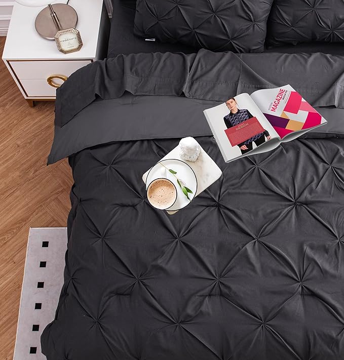 LANE LINEN California King Comforter Set, 7 Piece Cal King Bed in a Bag, Pintuck Cal King Bedding Set, Soft Cali King Bed Set, Cal King Bedding Comforter Sets with Sheets, Pillowcases & Shams - Grey