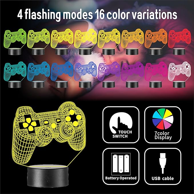 About This 【unique design】Immerse Yourself in Gaming Atmosphere,Transform your gaming space with our 3D gaming night light. Featuring a cool...