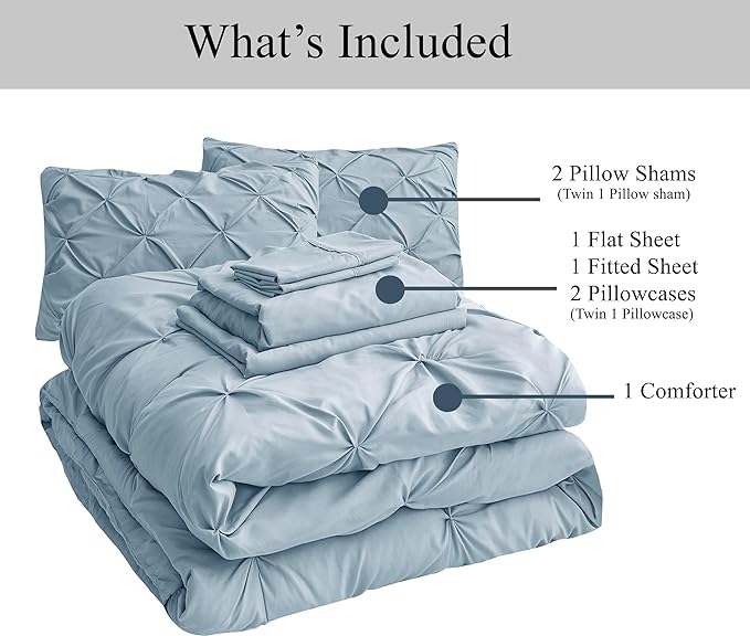 LANE LINEN Bed Comforter Set for Split King Mattress, 8 Piece Split King Bed in a Bag with 1 King Comforter, 1 King Size Flat Sheet, 2 Twin XL Fitted Sheets, 2 Pillowcases & 2 Shams - French Blue