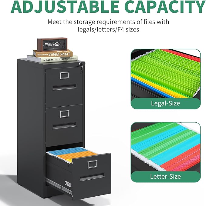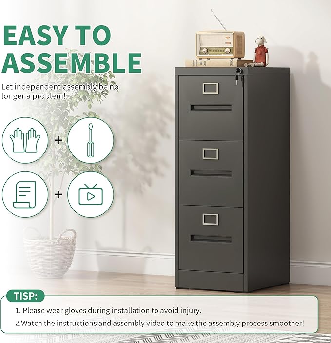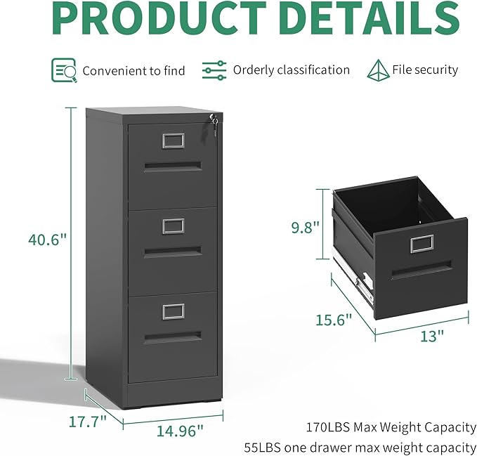 About This ✦【Spacious Storage & Organization】This metal 3 drawer file cabinet with lock offers spacious storage with larger and deeper...