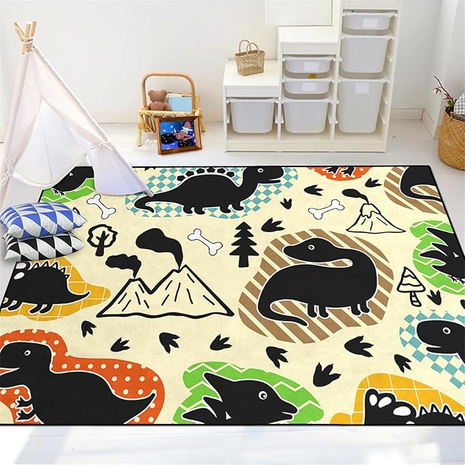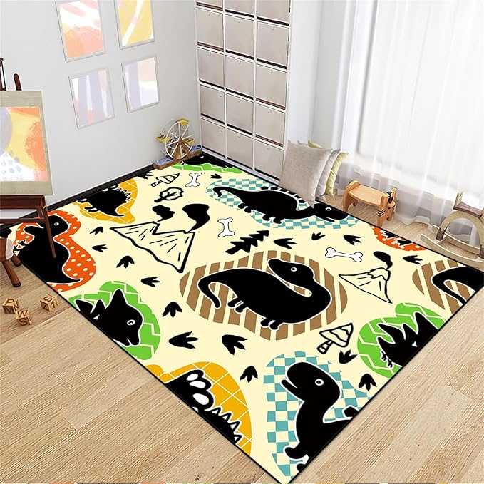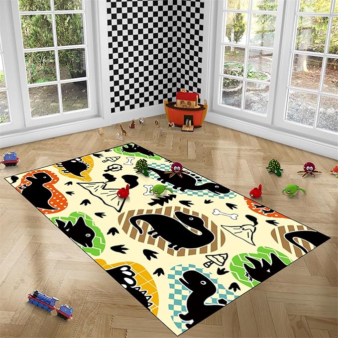 About This MATERIAL: dinosaur rug, the polyester fiber material is not easy to fade, dinosaur carpet for boys room, you...