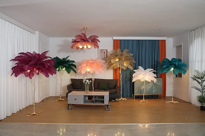 Luxury Resin Ostrich Feather Lamp, 35 Pieces real ostrich feathers,Feather Floor Lamp,Standing Lamp for Living Room, Bedroom and Office 67” Tall Feather Lamp (Ostrich Color)