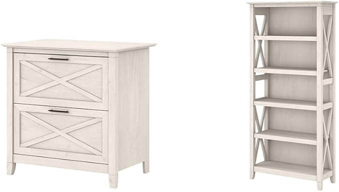 Bush Furniture Key West 2 Lateral File Cabinet | Document Storage & Key West Bookcase Shelf in Linen White Oak | Farmhouse Bookshelf Display Cabinet