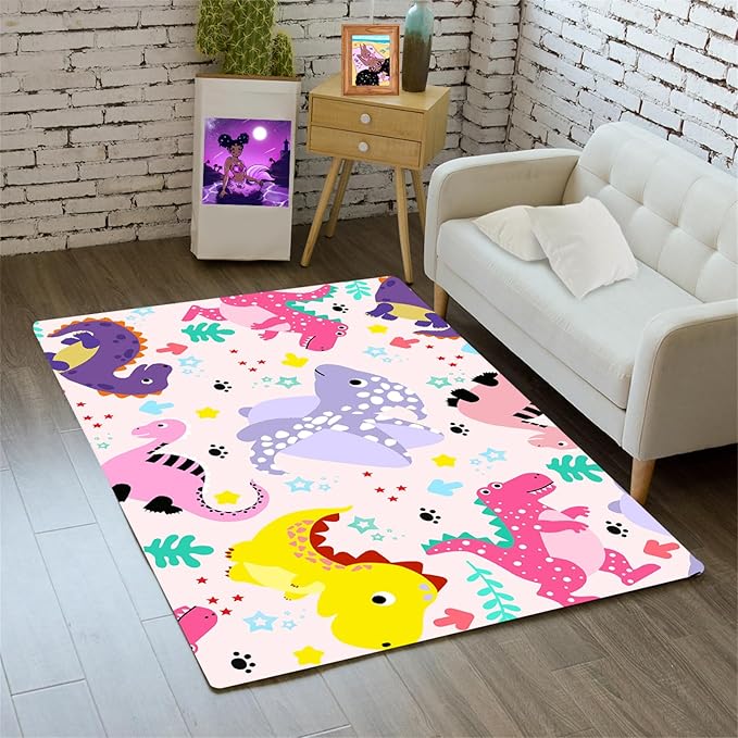 About This MATERIAL: dinosaur rug, the polyester fiber material is not easy to fade, dinosaur carpet for boys room, you...