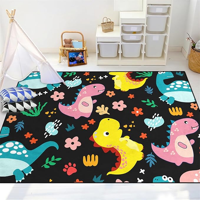 About This MATERIAL: dinosaur rug, the polyester fiber material is not easy to fade, dinosaur carpet for boys room, you...
