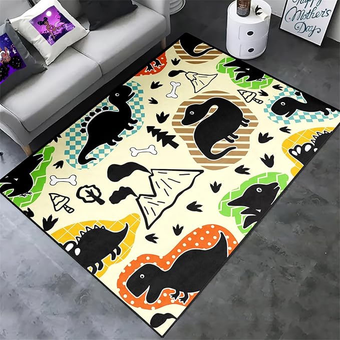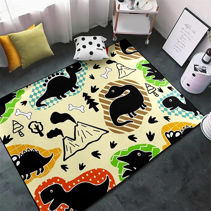 About This MATERIAL: dinosaur rug, the polyester fiber material is not easy to fade, dinosaur carpet for boys room, you...