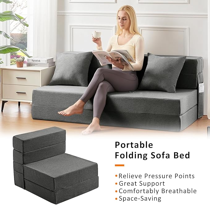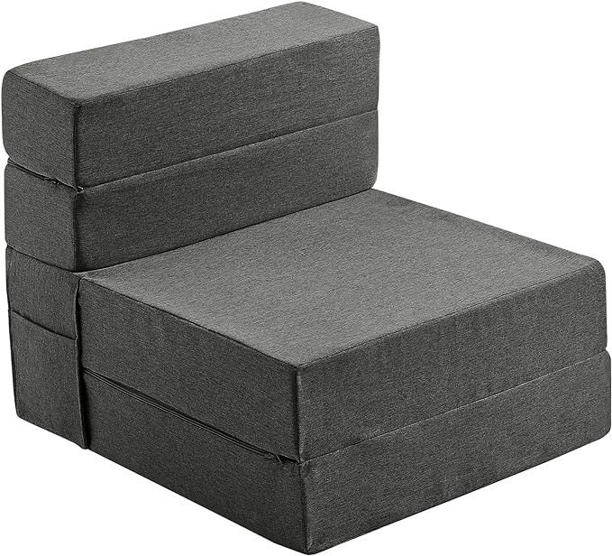 Single Size Folding Lazy Sofa Bed - Convertible Floor sofa with Two Large Pockets Lounge Chaise - Memory Foam Floor mattress Foldable for Living Room/Dorm/Guest/Home Office/Apartment (Dark Grey)