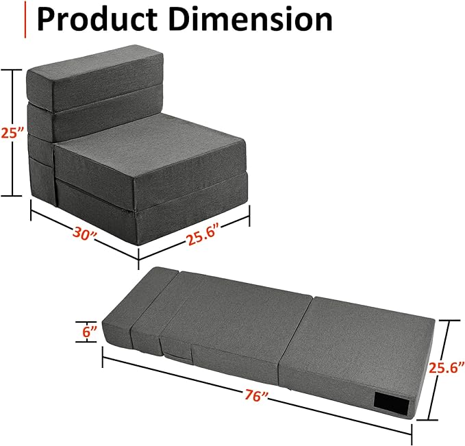 About This 【35D High Density Foam, No Collapse】The surface of JKMAX chair bed sleeper is made of breathable linen fabric;...